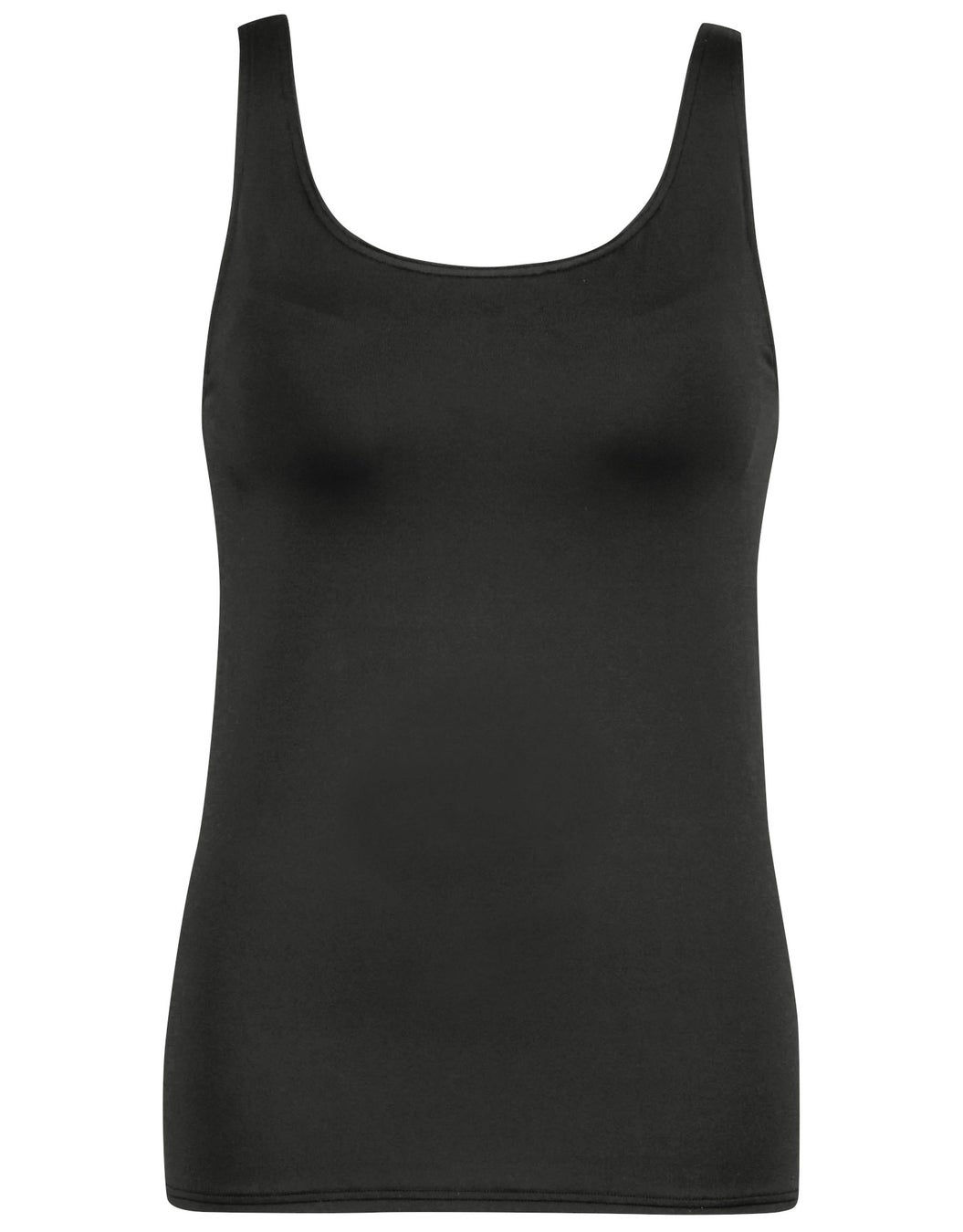 裏打ちのアンダーバスト部分は、ゴムをなくして圧迫感を軽減する設計に。背中部分の裏打ちには接触冷感性のある素材を使用し、汗が気になる背中もひんやりとさわやかに着用できます。