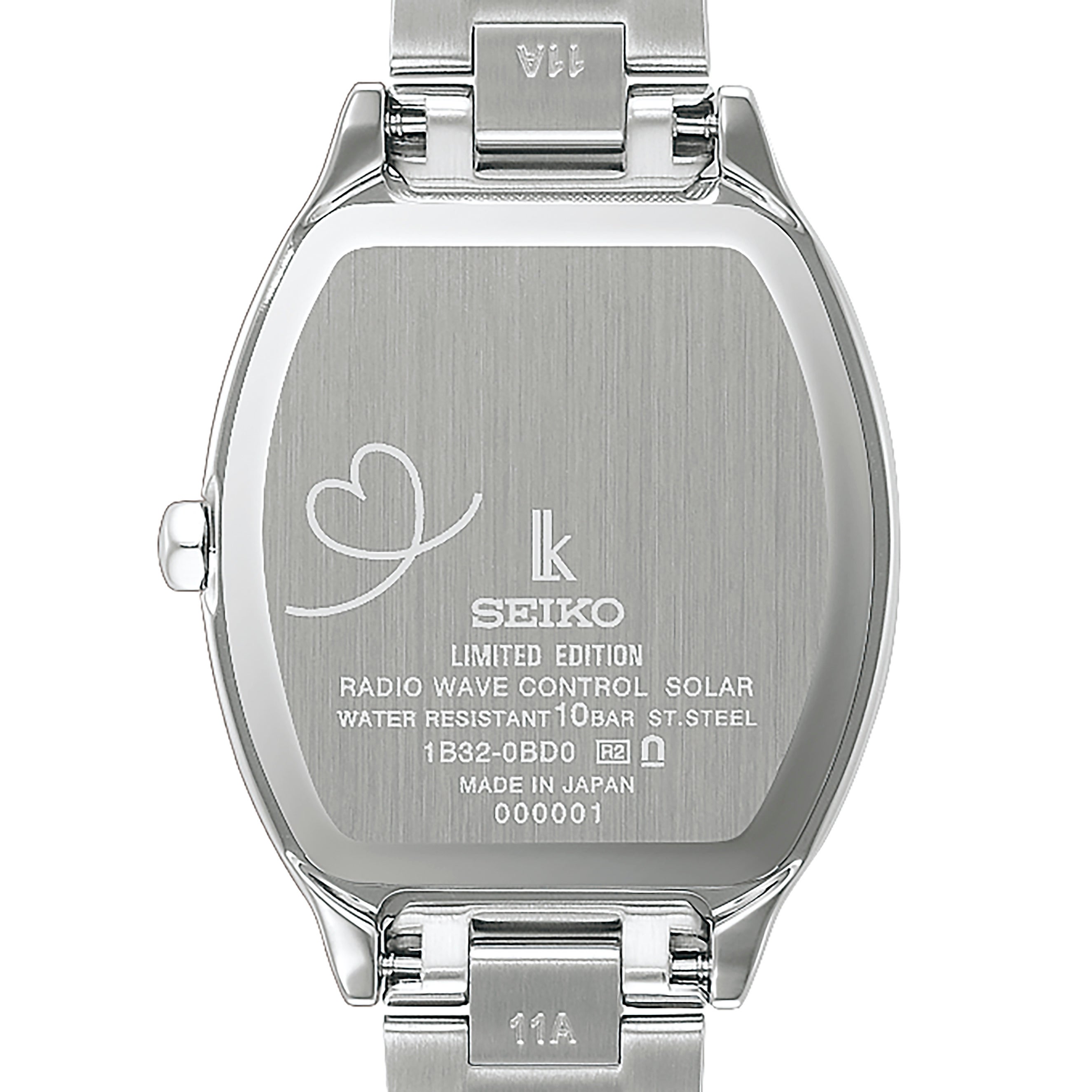 愛の象徴であるハートマークと、幸運の四つ葉のクローバーをさりげなくデザインしたソーラー電波時計