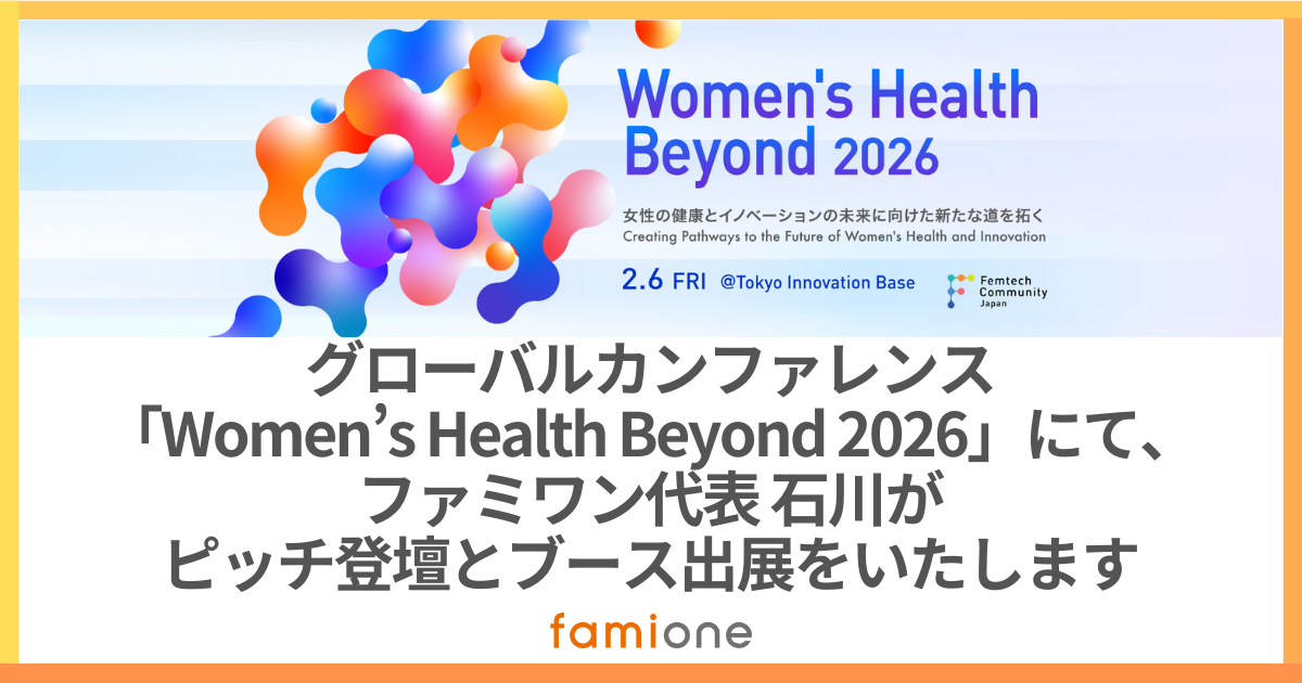 Femtech Community Japan主催「Women’s Health Beyond 2026」にて、ファミワンの石川がピッチ登壇とブース出展を行います