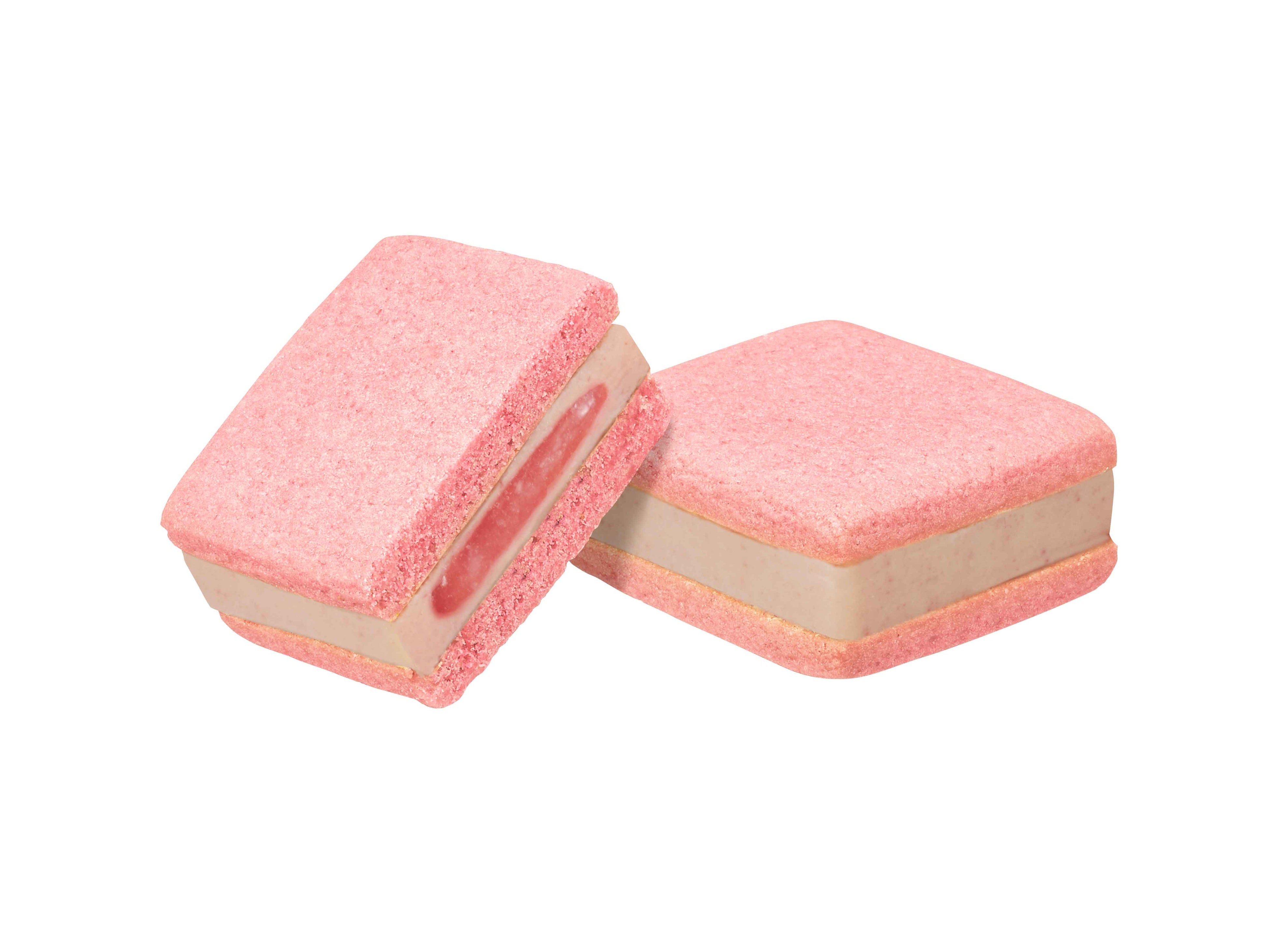あまおう苺パウダーを丁寧に練り込み、甘酸っぱい苺ソースを閉じ込めたホワイトチョコレートガナッシュを、ストロベリーペーストを丁寧に練り込んだサブレでサンドしました。優しい甘さのホワイトチョコレートと苺のさわやかな酸味が絶妙なバランスです。