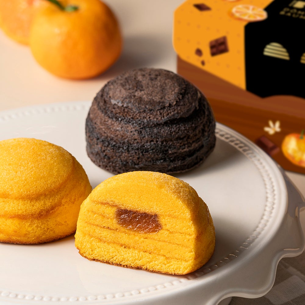 チョコレートと発酵バターを練りこみしっとりと焼き上げたドーム型のバームクーヘンです。限定フレーバー「みかん」とダークチョコレートを練りこんだ「ショコラ」をアソートしました。
