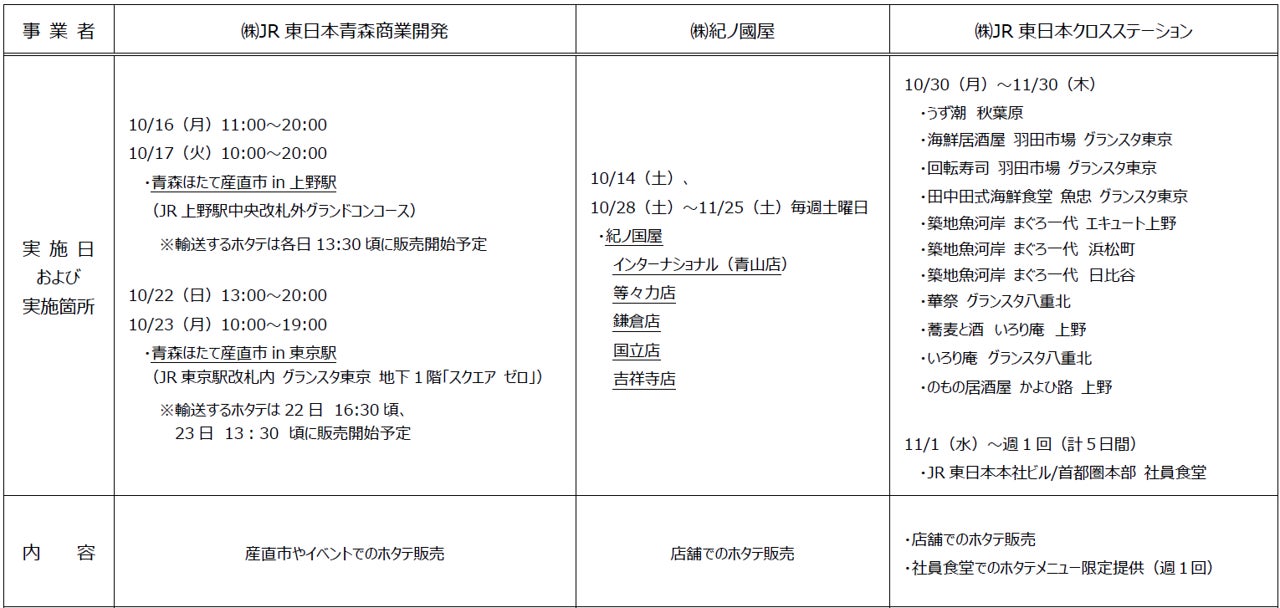 JR東日本グループは国産水産物をPRし 消費拡大を応援します~「青森県産ホタテ」を新幹線等で輸送し、首都圏の催事や店舗等で販売・提供します~