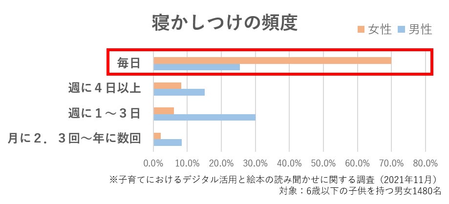 - 6歳以下の子を持つママの約7割が「毎日」寝かしつけをしている!