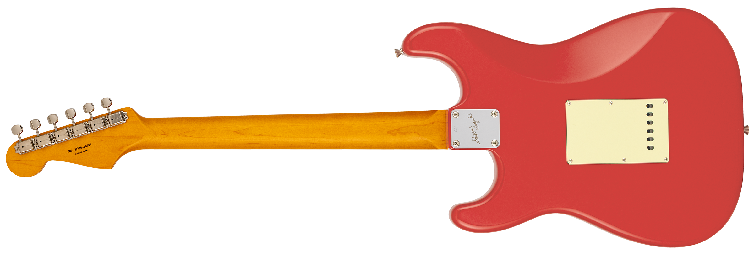 鈴木茂は自身のシグネイチャーについて次のようにコメントしています。「ストラトキャスターは、きれいな音から派手な音、ワイルドな音まで、あらゆる表現に応えてくれる“オールマイティ”さこそが、その魅力だと思っています。今回のモデルでは、長年自分が追い求めてきた“こういう音が欲しい”という理想を形にしてもらいました。特に低音の太さや全体のバランスに加えて、フィエスタレッドの色味も何度も調整を重ね、当時手に入れた頃の雰囲気に近づけています。ぜひ一度手に取って音を出して、このギターならではの魅力を感じていただけたら嬉しいです。」