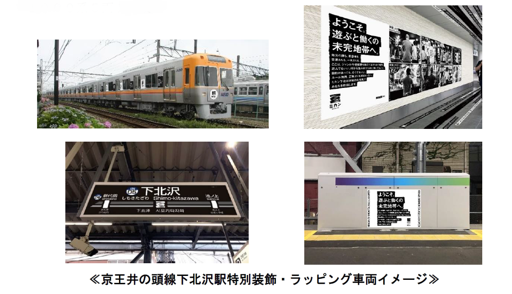 京王電鉄株式会社(本社:東京都多摩市、取締役社長:紅村 康)は、下北沢駅の高架下新施設「ミカン下北」が3月30日(水)に開業することを記念して、3月14日(月)から京王井の頭線下北沢駅の装飾とラッピング車両を運行します。また、4月2日(土)、3日(日)の2日間、開業イベント「未完祭」を開催します。
