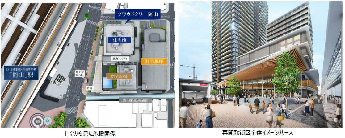 環境・省エネ対策と安心安全の災害対策を実現し、さまざまな世代・世帯ごとに求められるニーズに合わせた、総戸数422戸の大規模タワーマンションとなる住宅棟「プラウドタワー岡山」、観光やインバウンドを見据えたホテル棟に加え、住民の皆さまやまちの方々への日々の生活のライフラインを提供する商業施設、多様なコミュニティ形成や地域コミュニティの活力を高める、コンベンション施設などの拠点機能があります。まちづくりのコンセプトである「OKAYAMA GATE PLACE」を元に、周辺地域との連携したイベントの検討などにより賑わいを創出し、岡山市のランドマークとなるまちづくりを目指します。