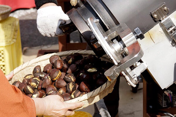- 栗そのものの旨味を凝縮した「焼き栗」の実演も