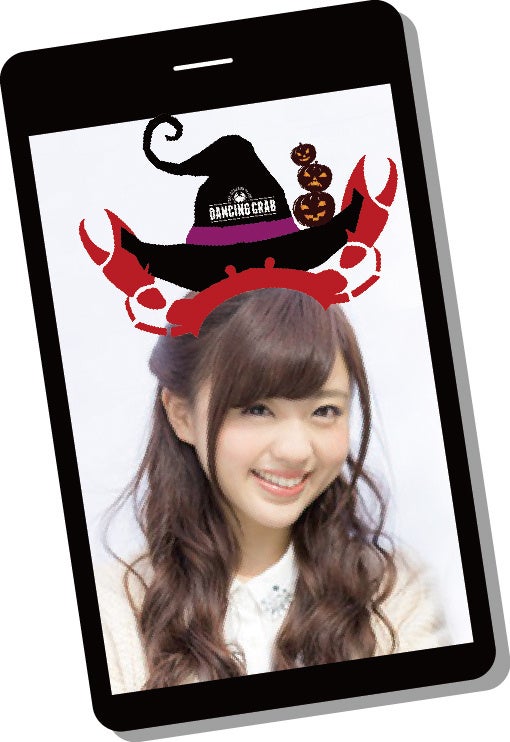 ハロウィン期間限定の魔女カニカチューシャは顔認証でぴったりフィットして、仮装しなくてもハロウィン気分を味わえます。
