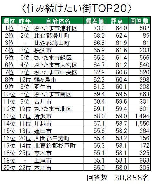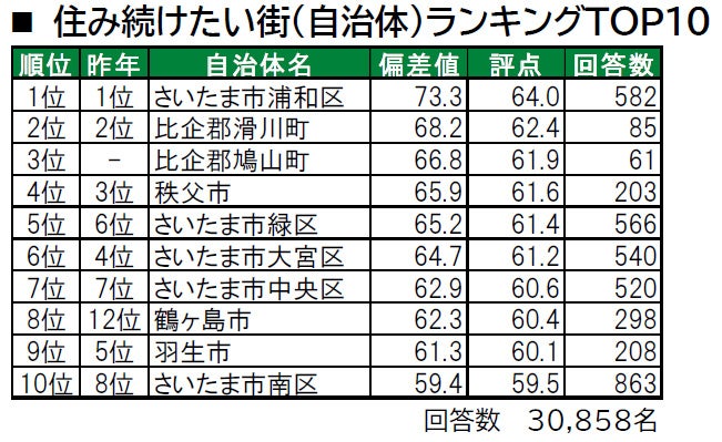■住み続けたい街(自治体)トップは、2年連続でさいたま市浦和区