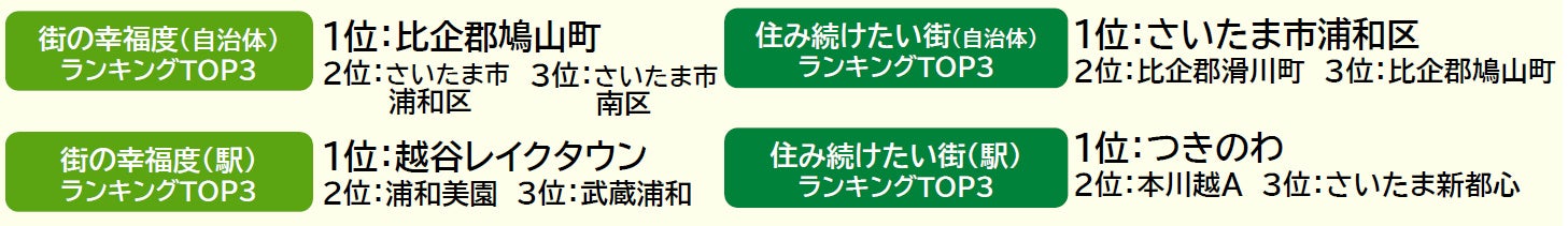 いい部屋ネット「街の幸福度 & 住み続けたい街ランキング2022<埼玉県版>」発表