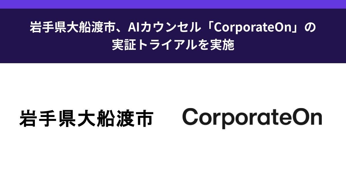 株式会社LegalOn Technologies(本社:東京都渋谷区、代表取締役 執行役員・CEO:角田 望)は、岩手県大船渡市(市長:渕上 清)に、AIカウンセル「CorporateOn」(https://lp.www.legalon-cloud.com/corporateon)の実証トライアルを実施いただいたことをお知らせします。