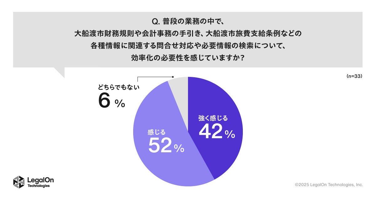 *¹ 普段の業務の中で、大船渡市財務規則や会計事務の手引き、大船渡市旅費支給条例などの各種情報に関連する問合せ対応や必要情報の検索について、効率化の必要性を感じているか?