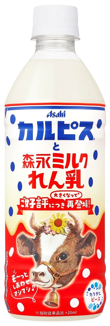 『カルピスと森永ミルクれん乳』は、昔から変わらないコクのある甘さが特長の「森永ミルク 加糖れん乳」を「カルピス」にブレンドしています。「カルピス」とれん乳のしっかりとしたコクのある甘さが楽しめ、リラックスしたい時にぴったりです。2022年10月にPET480mlを期間限定で発売し、「甘党にとってたまらない」、「もっと大きなサイズで販売を続けてほしい」などと好評でした。今回、好評だった味わいはそのままに容量を500mlに増量し、発売します。