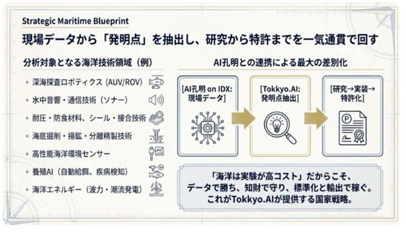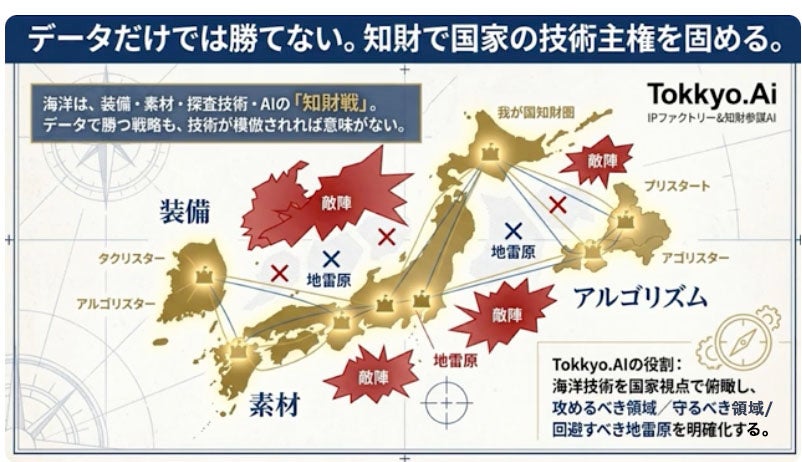 知財戦略の確立 :Tokkyo.AIで装備・素材・アルゴリズムの特許戦略を構築し、海洋技術を「輸出できる競争力」へ変換