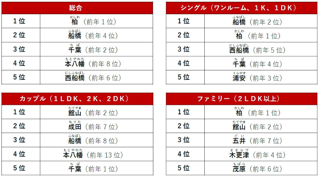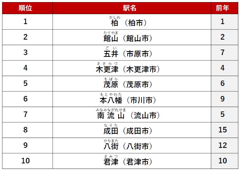 「アットホーム 賃貸・駅ランキング千葉県編」 調査結果