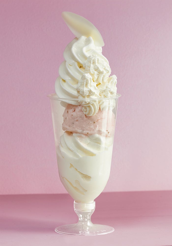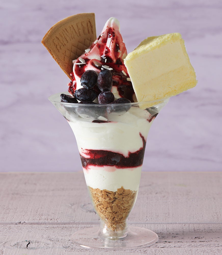 2つのソフトクリームを一度に味わえる楽しさが魅力のパフェ。