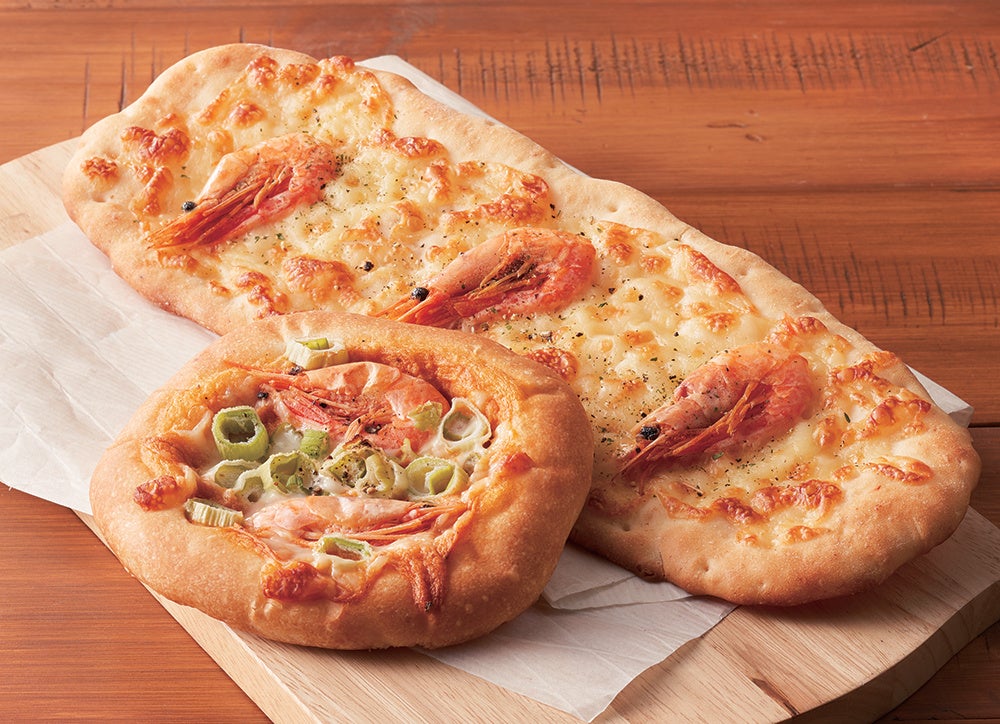(写真右)甘エビのチーズせんべいパン(1個)540円(各日100個限り)