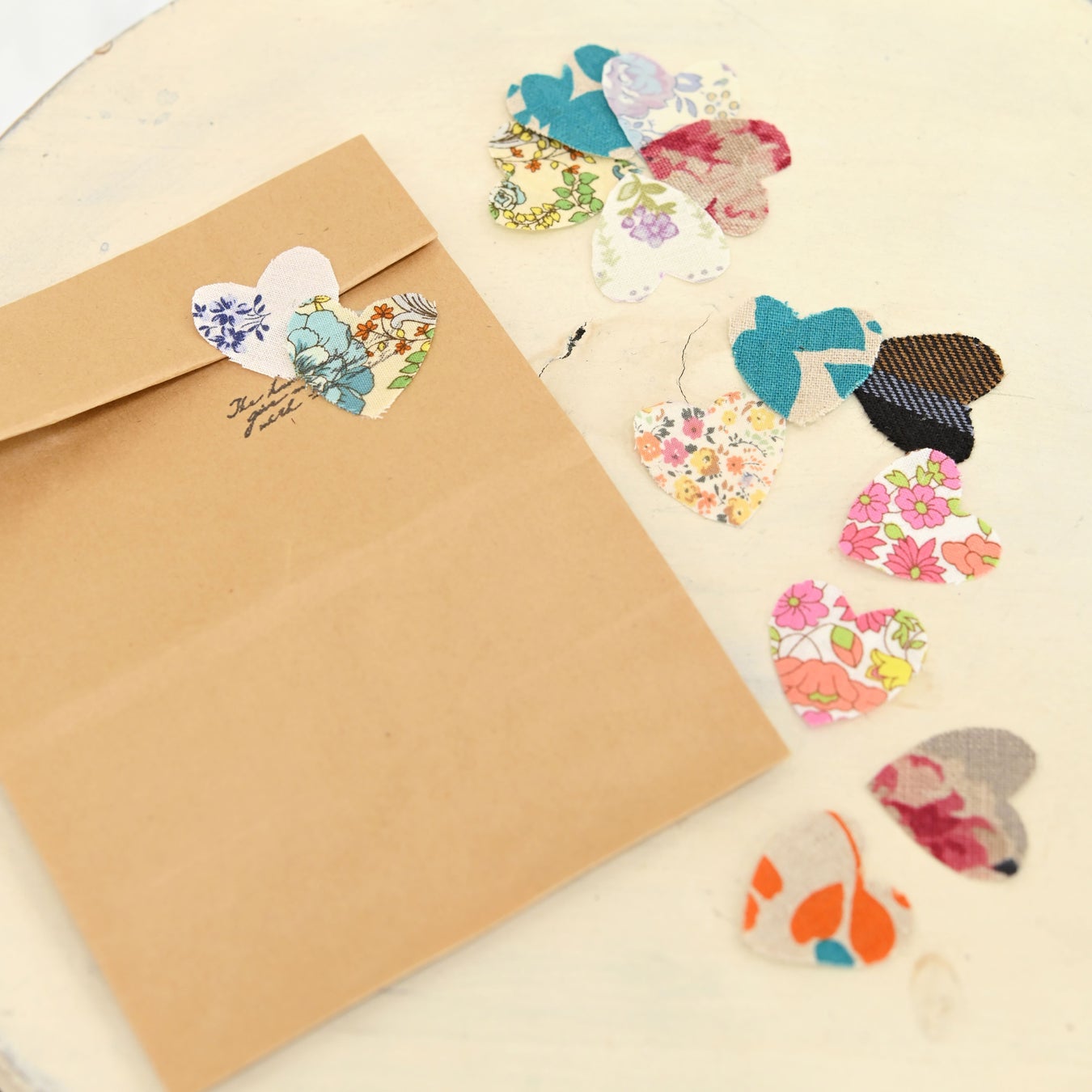 くびれ定規のハートの型抜きで、ラッピングのかわいいあしらいをご紹介。また、カード定規の型抜きを使うと、星が描けます。刺しゅう図案にしたり、アップリケモチーフにしたり、アイデア次第で使い方は無限です。