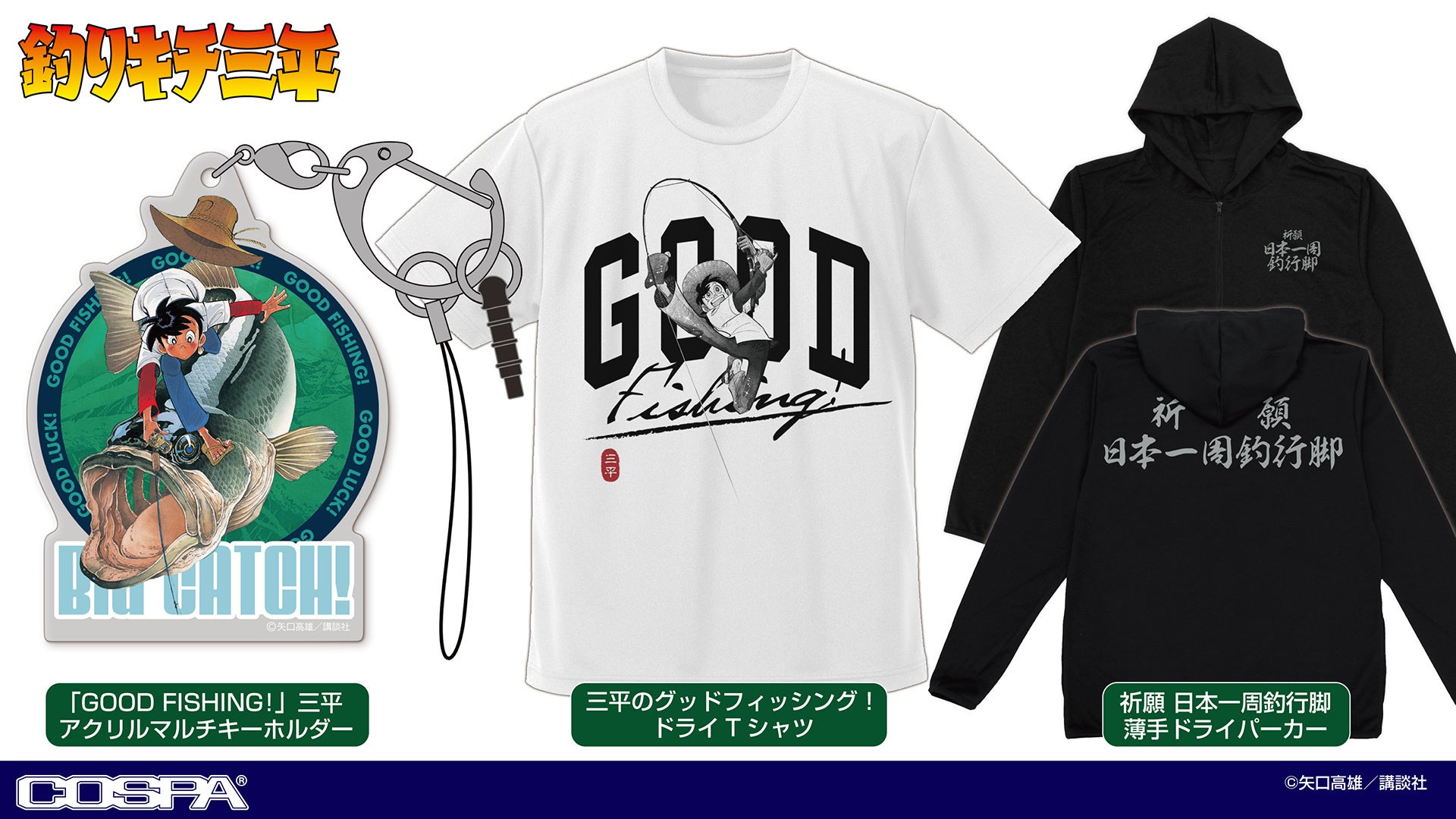 通気性がよく紫外線カットの効果もあるドライ素材のパーカーやTシャツは、釣りにはもちろん水遊びやスポーツにもおすすめ!春も夏も『釣りキチ三平』グッズで快適にすごしてみてはいかがでしょうか。