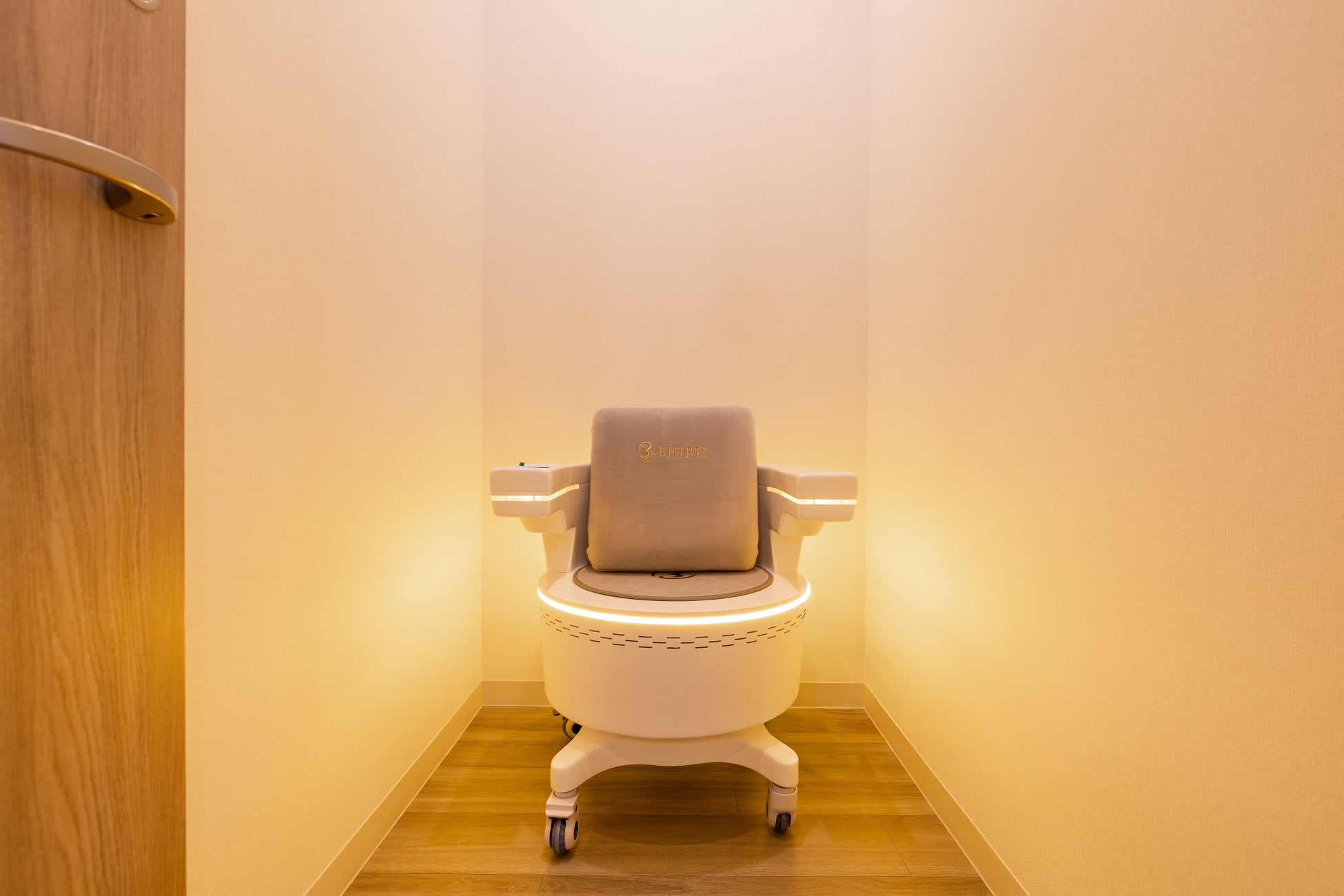 服を着たまま座るだけで「筋肉+脂肪」両方にアプローチできます。なかなか鍛えることのできない骨盤底筋や下半身を電磁パルスの刺激で座るだけで鍛えることができる美容マシンです。
