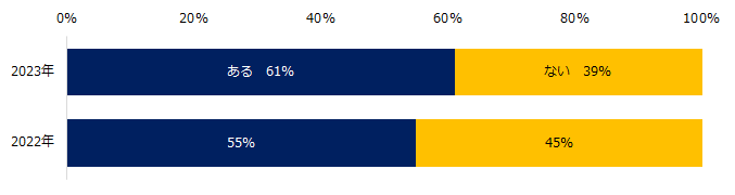 「転職活動において選考辞退をしたことはありますか?」と伺うと、「ある」と回答した方は61%で、2022年に実施した同調査(※)より5ポイント上昇しました。
