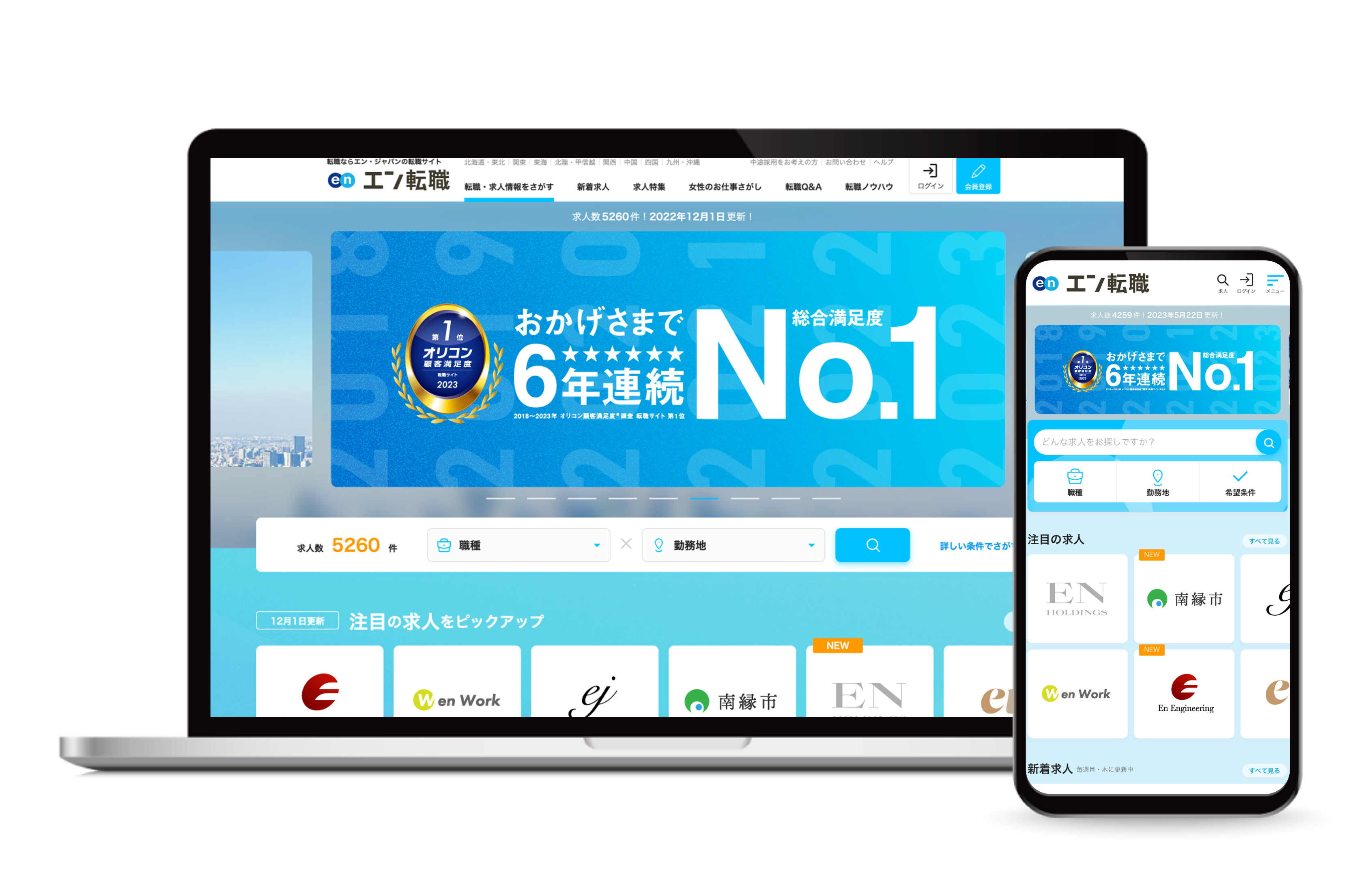 ※2018年~2023年オリコン顧客満足度調査「転職サイト」ランキング総合1位(https://career.oricon.co.jp/rank-job-change/)