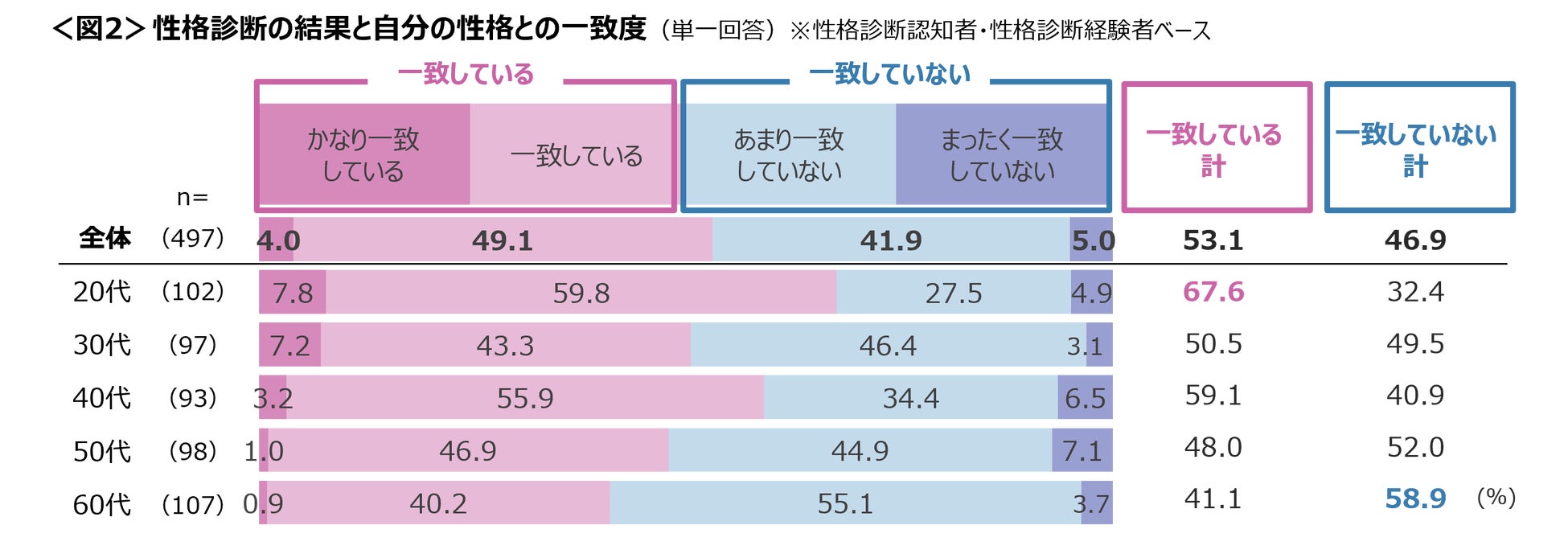 診断結果と自分の性格は、53.1%が「一致している」と認識。
