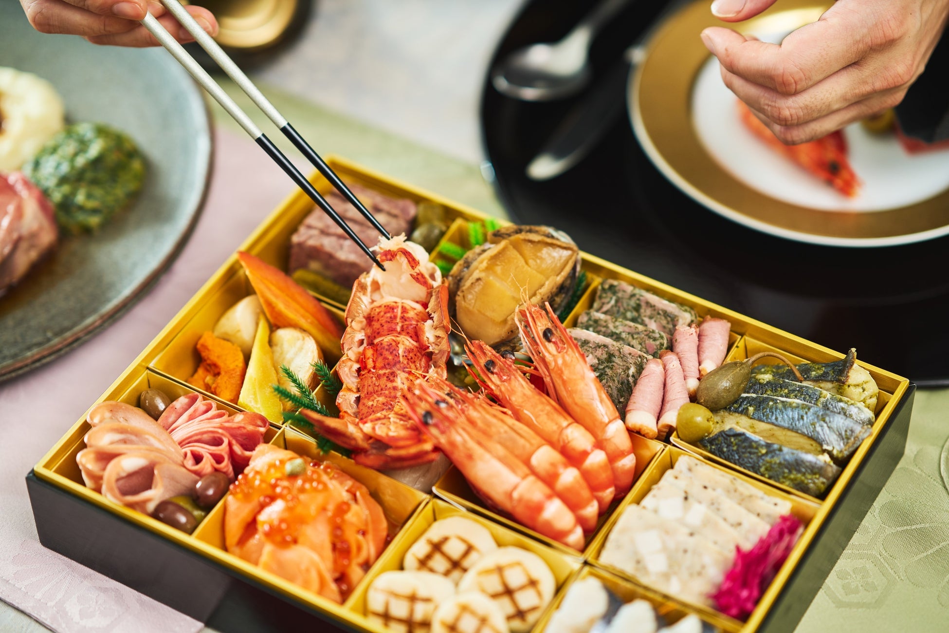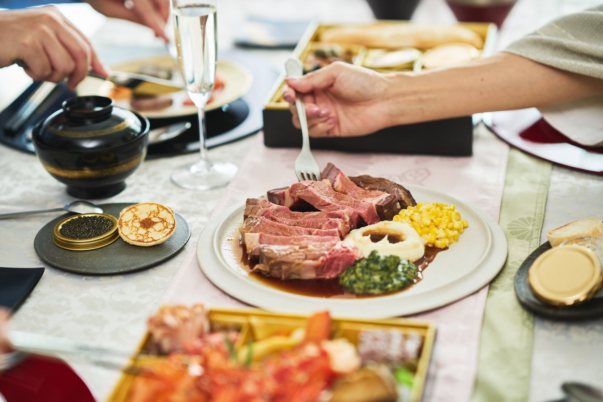 2025年のおせちは、この要素をちりばめ、自慢の“プライムリブ”だけでなく、様々なコンテンツを詰め込んで、より選べる楽しさを充実させています。前菜からデザートに至るまで、まるでレストランディナーのような洋風おせちです。種類は、プライムリブとお食事を楽しめる二段重、キャビア・トリュフバターと厳選デザートが付いた三段重の2種類をご用意します。
