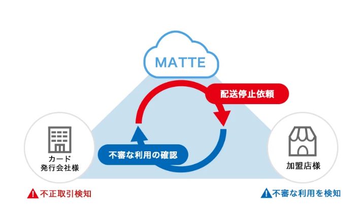 今後は、導入加盟店様の拡大に向けた積極推進を行い、「MATTE」を通してカード発行会社様と加盟店様が即時に情報連携を行い、被害の未然防止に向けた迅速な対策を取れるような安全・安心なネットワークの構築・拡大を実現してまいります。