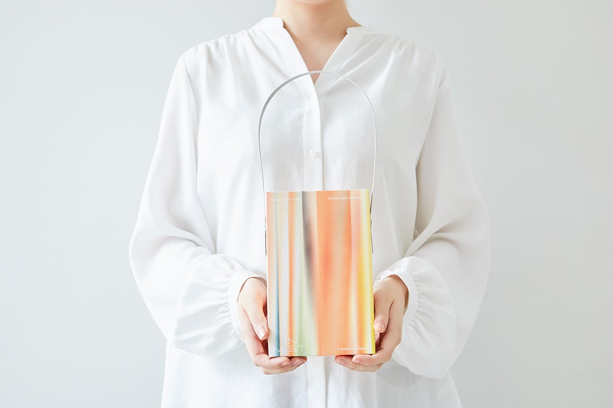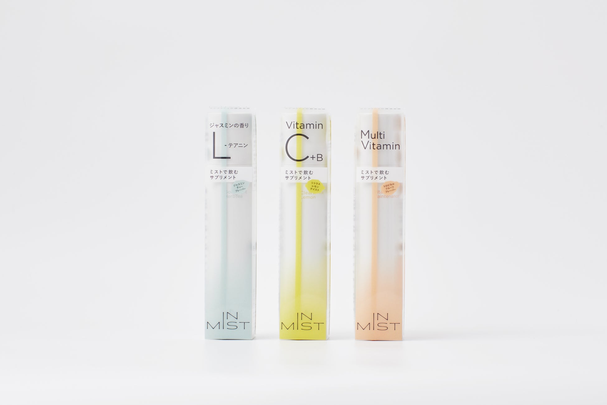 サプリメントに配合された栄養素と、IN MISTの特徴でもあるシンプルなボトルデザイン両方が一目でわかる、透明なセロハンを用いたパッケージです。