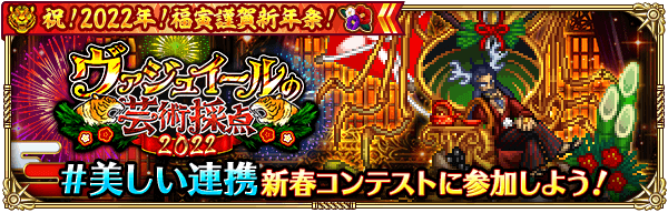 詳細は「ヴァジュイールの芸術採点2022開催記念 #美しい連携 新春コンテスト」開催時に掲載されるゲーム内お知らせをご覧ください。