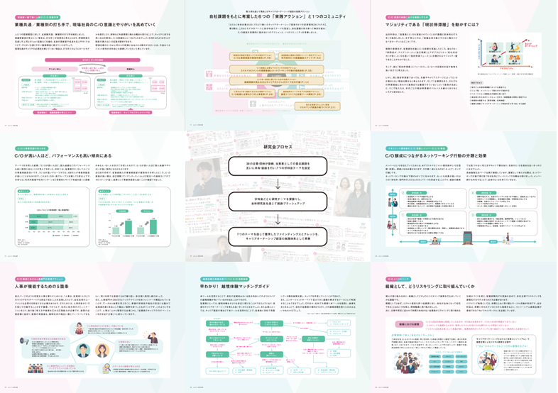 「はたらく未来白書」は、自律型キャリア形成を推進し、「個人と企業の新しい関係性」を模索している当コンソーシアムに参画している企業たちが「キャリアオーナーシップ人材を活用し、企業の中長期的な成長を生み出していくには、どうしていくべきか?」あるいは、「人的資本の最大化によって企業の持続的成長をいかに実現するのか?」という問いについて、各社の経営戦略、事業戦略、人事戦略を相互に共有しながらオープンに議論した内容を、実践の現場から見えつつある兆しをもとに、「キャリアオーナーシップ経営」の実践論として編纂したものです。