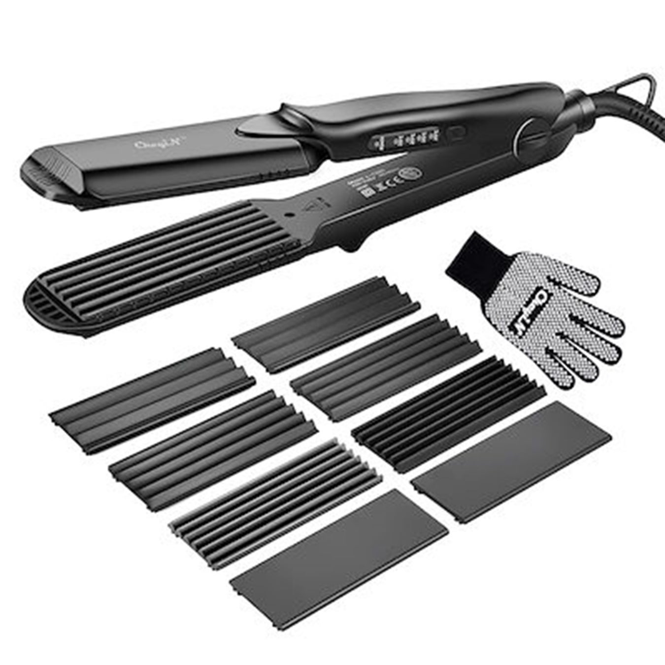 4つのセラミックプレートが付属し、ストレート、カール、ウェーブを1本でこなせるヘアアイロン!