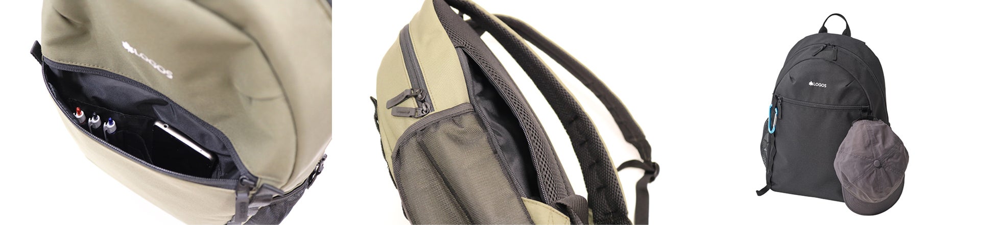 「LOGOS スタンダードデイバッグ-BD」は通勤などデイリーに使いやすい容量20Lのリュックサックで、「LOGOS スタンダードボディバッグ-BD」は500mlのペットボトルも入る収納力抜群のボディバッグです。どちらも撥水加工を施しており、雨の日も安心です。カラーは、アウトドアシーンやタウンユースにもなじむブラックとカーキの2色展開です。