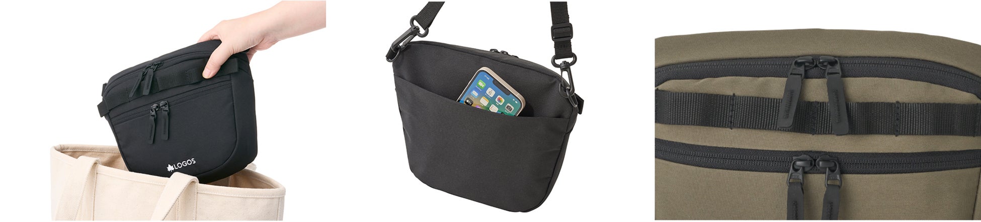 また、「LOGOS スタンダードボディバッグ-BD」と「LOGOS フォンサコッシュ-BD」は、ショルダーベルトが取り外せ、バッグインバッグやポーチとしても使えます。