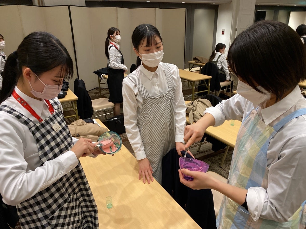東京都内の歯科総合医療メーカーご協力のもと、医療秘書・事務学科、IT医療情報学科、ビジネスライセンス学科の1年生59名が、歯科材料について学び知識と技術を深めました。研修実施後に無記名アンケート調査を行い、満足度5段階評価のうち平均評価4.66と高い満足度の研修となりました。(有効回答数47名)