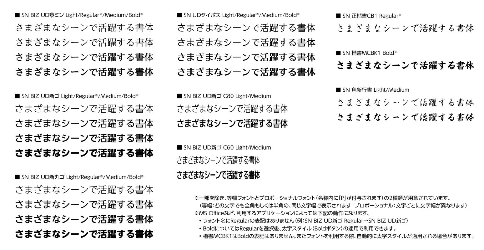 株式会社モリサワが弱視や老眼の方などを含むより多くの方に読みやすいように開発したモリサワのUD(ユニバーサルデザイン)フォントに加え、挨拶状・賞状・履歴書・領収書などの礼節が必要な場面で役立つ楷書・行書体フォント合計24書体を収録しているフォント集です。