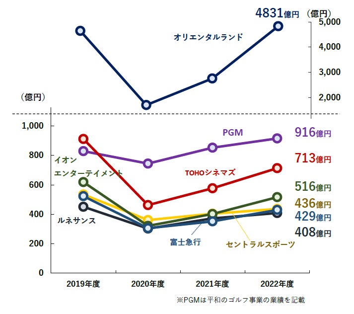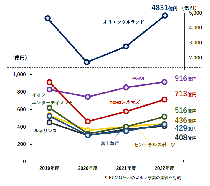 (参考)娯楽サービス業界の主要企業の業績の推移(2019年度~2022年度)