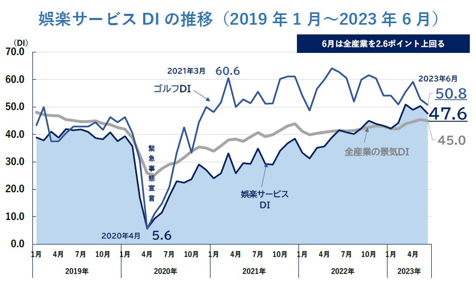 2023年の娯楽サービスDI、行動制限の解除で回復鮮明に。好調なゴルフDIがけん引