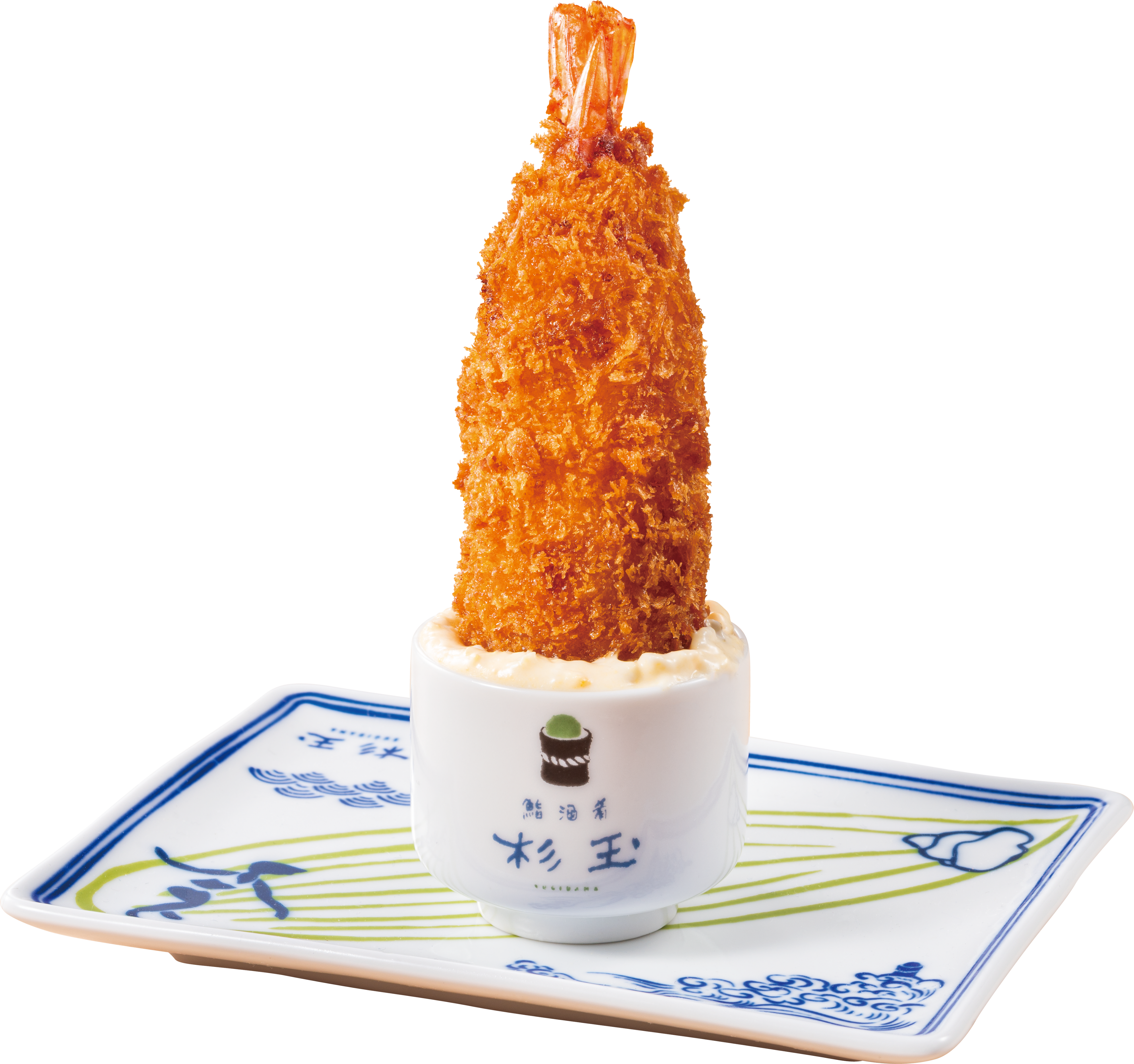 『杉玉の秋祭り』の目玉商品は、ネタをしゃりで包み込み、おはぎのような見た目に仕立てた「本鮪中とろ入り、まぐろのおはぎ」です。中に挟んだ大葉の風味に、赤身と脂のバランスが良い本鮪の中とろやインド鮪赤身、ねぎまぐろの旨み、食感の良い刻みたくあんをお楽しみいただけます。まぐろのおはぎは単品の他、まぐろや鯛などの刺身と盛り合わせた「まぐろのおはぎものった 杉玉の宝船」でも堪能いただけます。また、杉玉らしくアレンジをした屋台メシも登場します。「大阪名物!イカ焼き 杉玉特製ソース」は、揚げたイカ焼きの中に黄身を炙って挟み、仕上げにXO醤とマヨソース、たこ焼きソースを混ぜたオリジナルソースをかけた、お酒のアテにぴったりの一品です。「足が生えちゃった、たこ焼き」は、登場する度に好評をいただくたこ焼きとタコさんウインナーを組み合わせたインパクト抜群の一皿です。さらに、お客さまに思う存分海老を堪能していただきたいとの想いから誕生した「そびえ立つ、海老フライカツ ほんのりチーズのタルタルソース」もおすすめです。海老の周りに、細かくカットした海老を纏わせた海老フライカツを、チーズとXO醤を混ぜ合わせたタルタルソースに付けてお楽しみいただけます。海老を海老で包み込んだ、今までに無い新しい発想のジャンボ海老フライです。