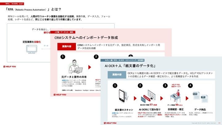 そこで、本資料では、人とロボット(RPA)を組み合わせたデータ連携など、自社に合ったソリューションを事例つきで解説します。ぜひご参考にしてください。
