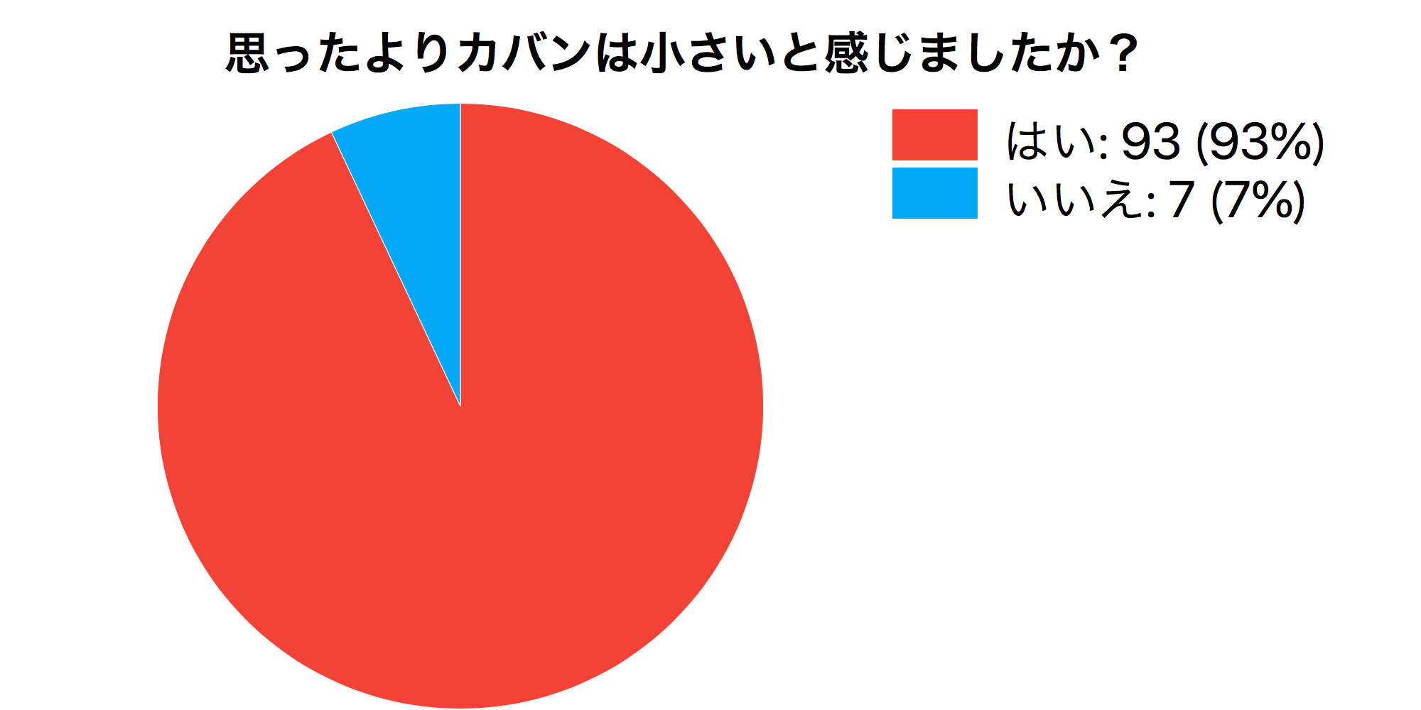 「Q5.思ったよりカバンは小さいと感じましたか?」と質問したところ、「はい」が92%、「いいえ」が8%といった結果になりました。
