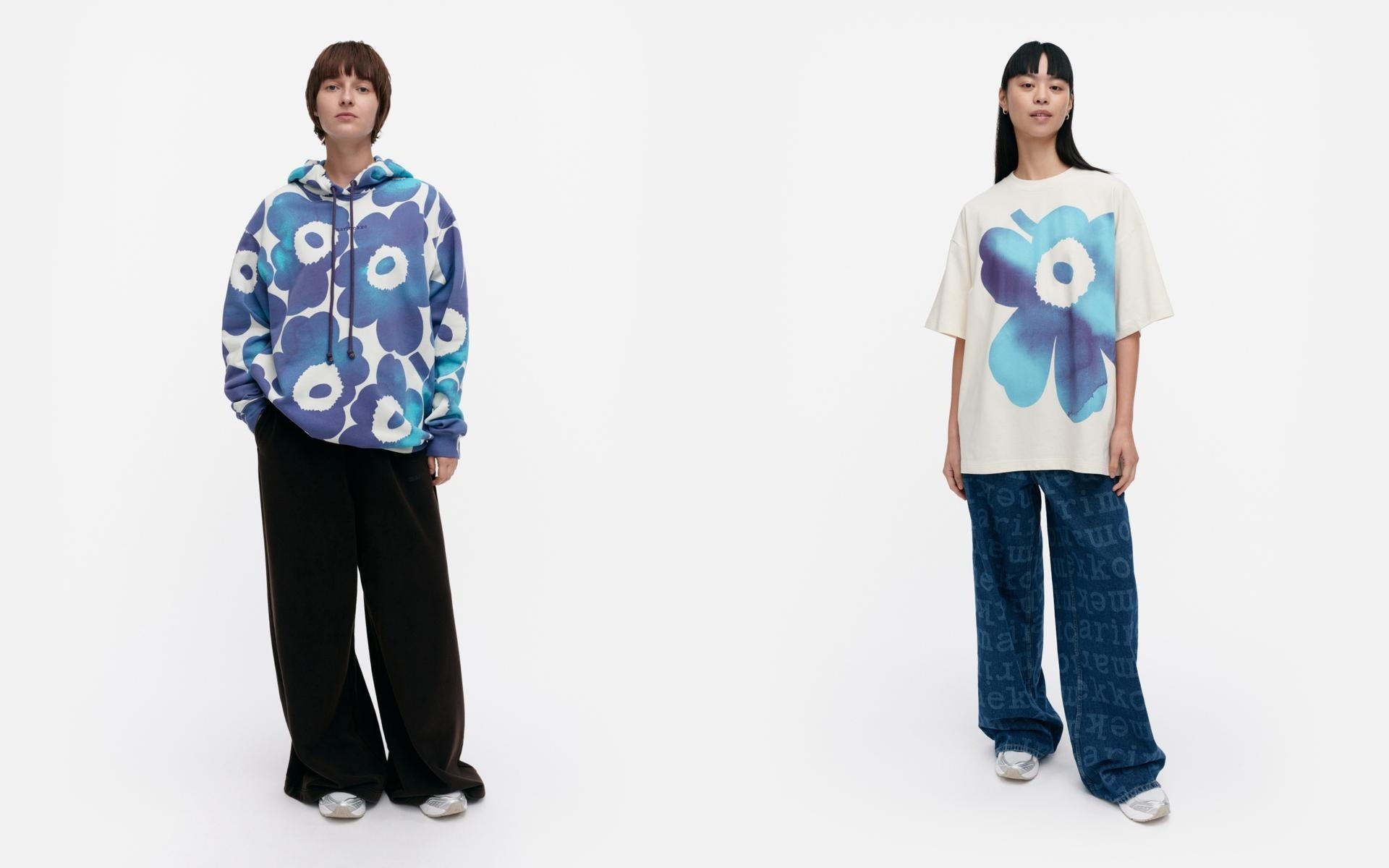 今回のコレクションでは、アイコニックなフラワープリント ウニッコ(Unikko)が水彩画風のデザインになって登場。フロントに大胆なプリントを施したTシャツをはじめ、全面にプリントを配したジャージアイテム、さらにキャンバスバッグシリーズ ヴァンッカ(Vankka)にもプリントされます。
