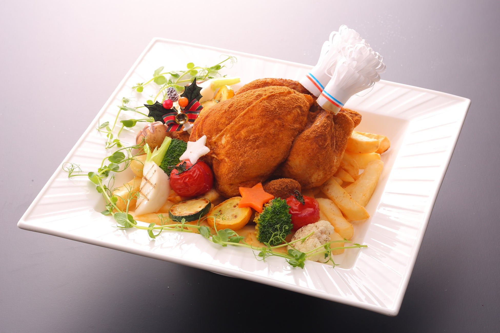 国産鶏を一羽丸々使いスパイスの利かせたローストチキンをご用意いたしました。