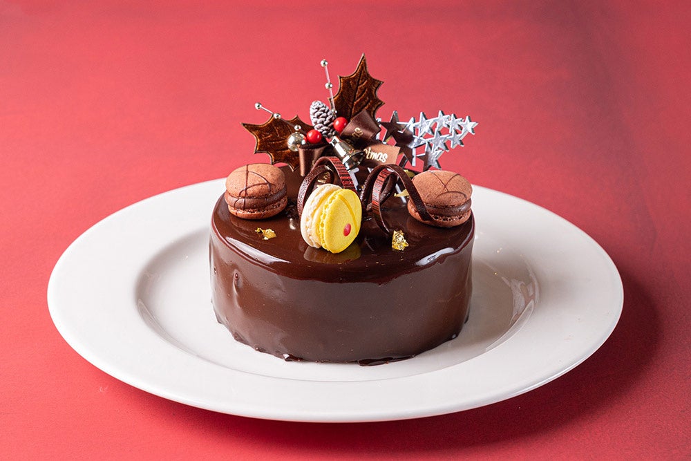 大人なクリスマスをイメージした、少しビターなチョコレートケーキ。 中には2種類のチョコレートとピスタチオのガナッシュクリームが入っています。マカロンがチャームポイントです。(限定50個)