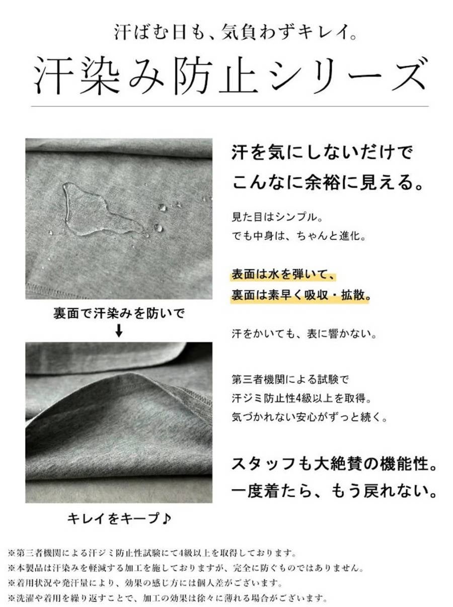 肌ざわりの良い心地よさを保ちながら、汗ジミを防ぐ機能も両立しています。