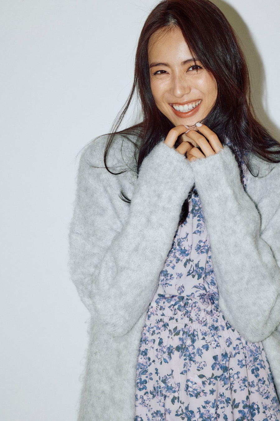 これは肌がきれいに見えるクールなグレイッシュピンクとちょっぴりクールな花柄で、甘辛バランスが絶妙。