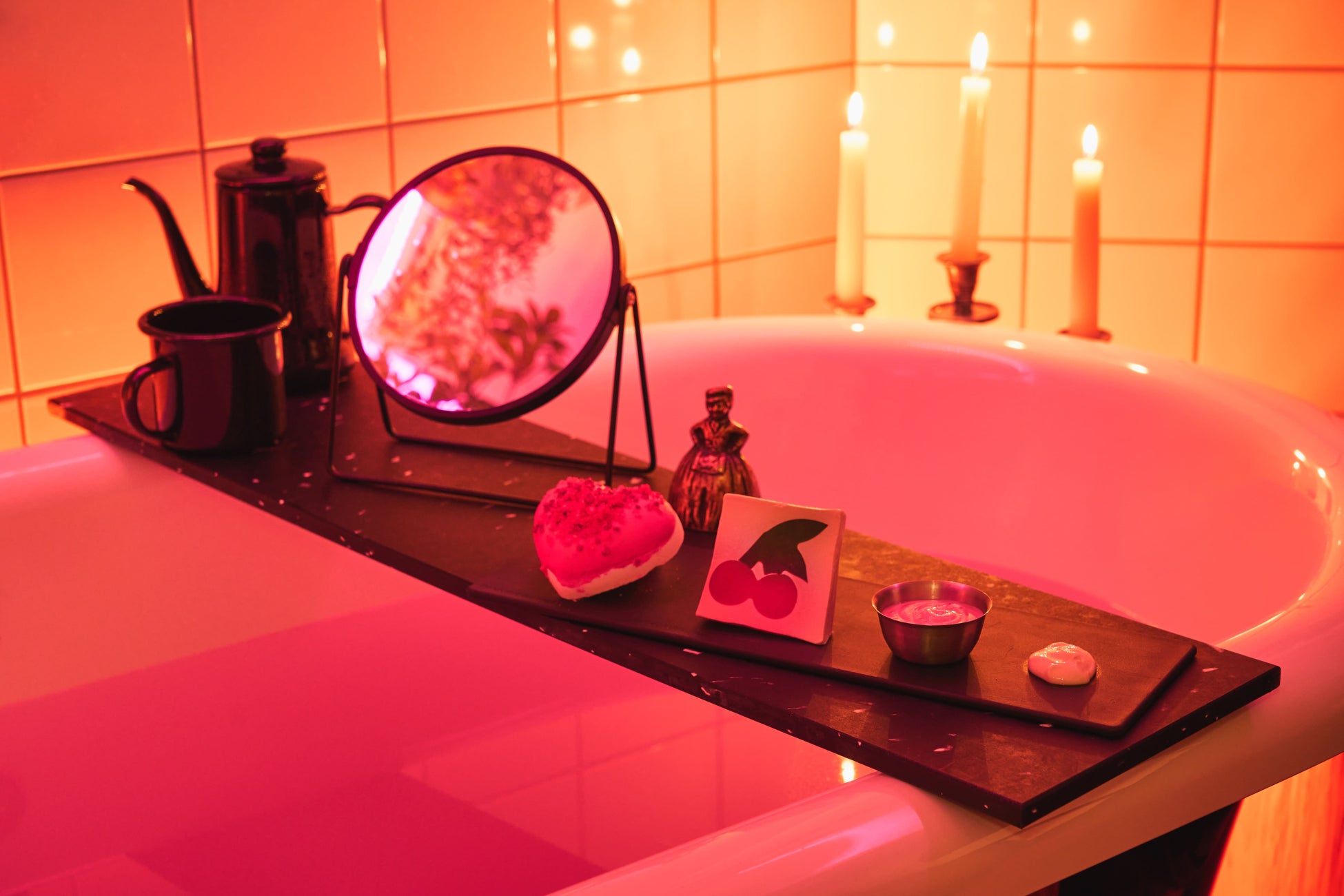 バスタブに広がる鮮やかなローズピンク。