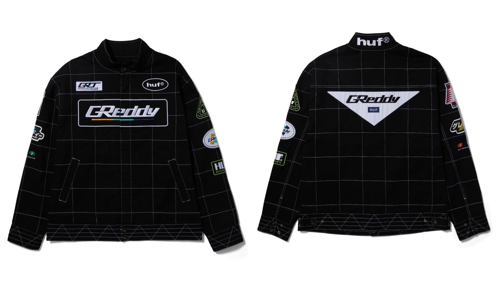 HUF X GReddyでは、フォーミュラレーシングの美学と、GReddyのアーカイブとレガシーからインスパイアされた、両ブランドのカスタムアートを取り入れたディテールを落とし込んでいます。