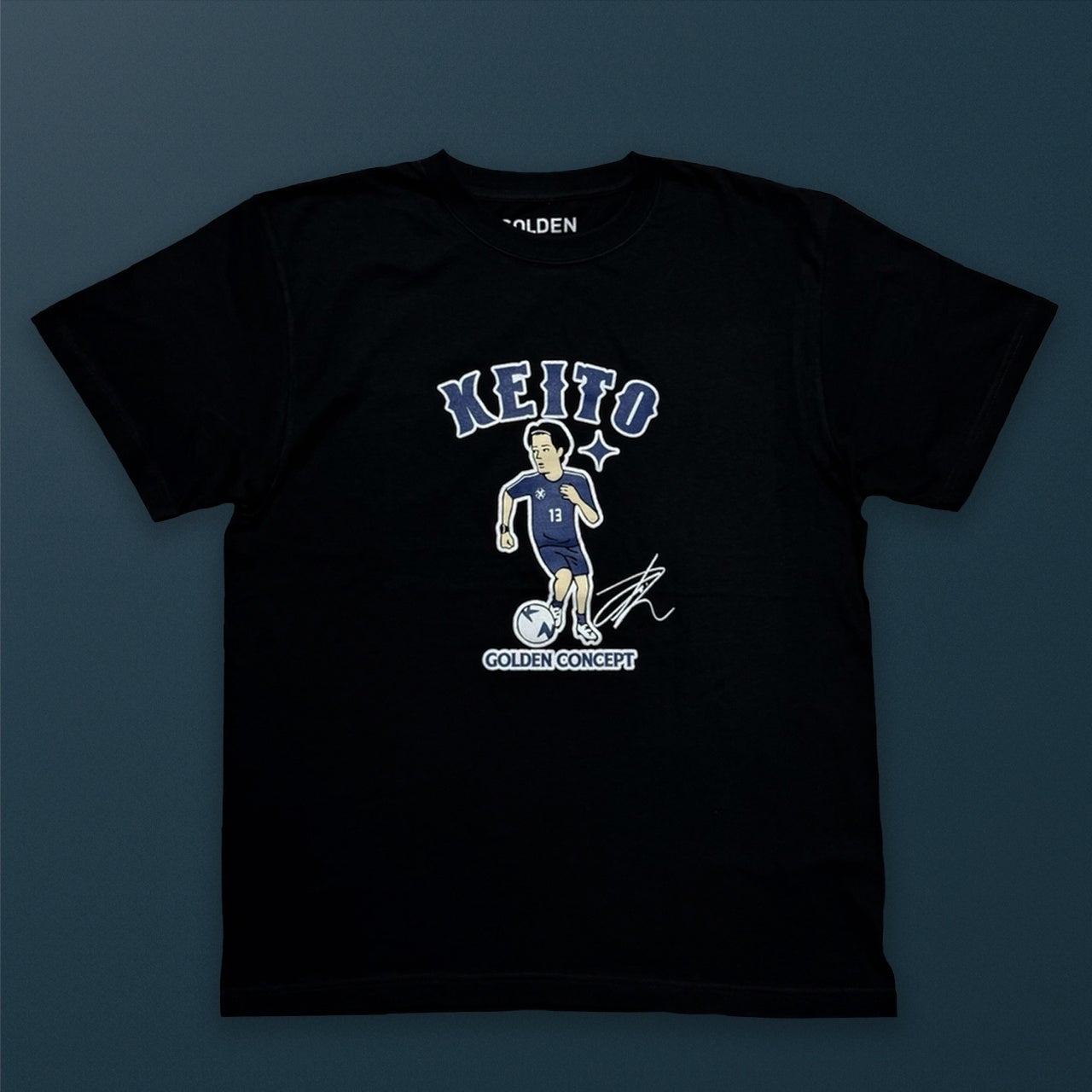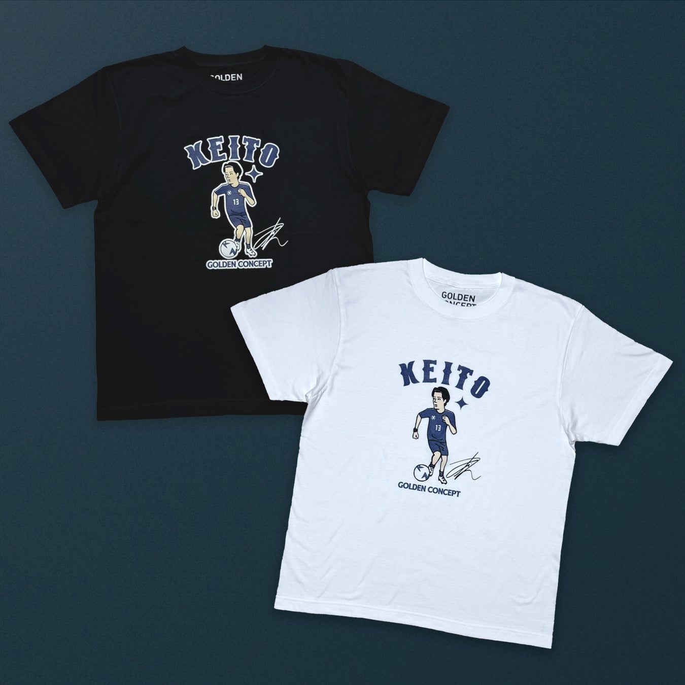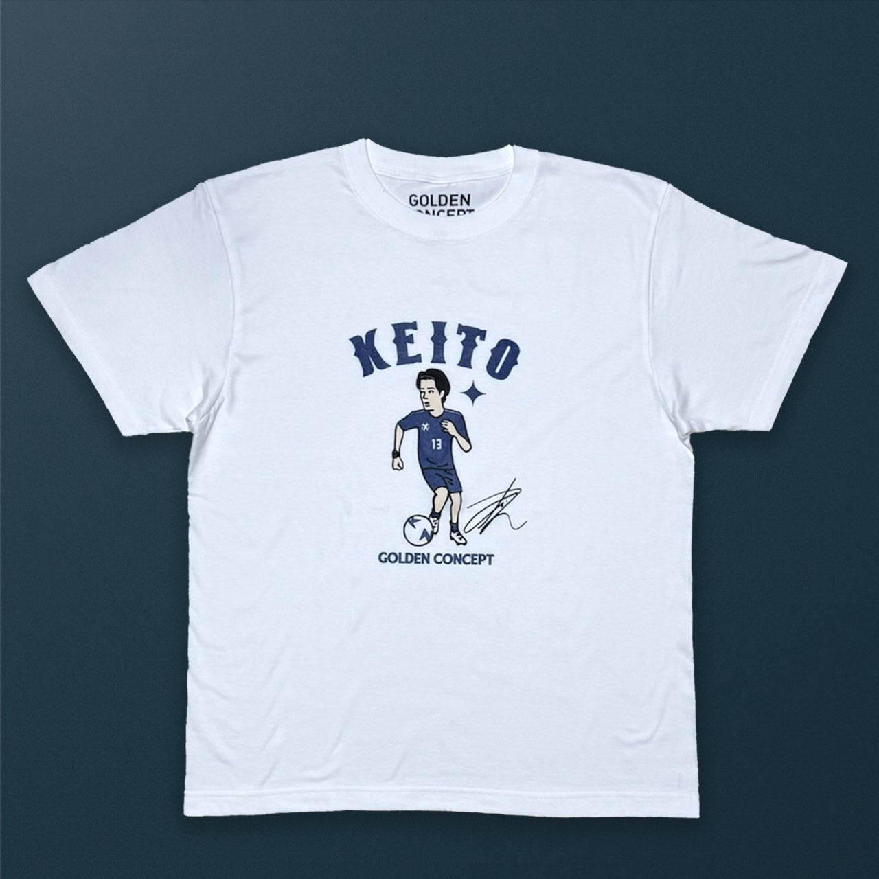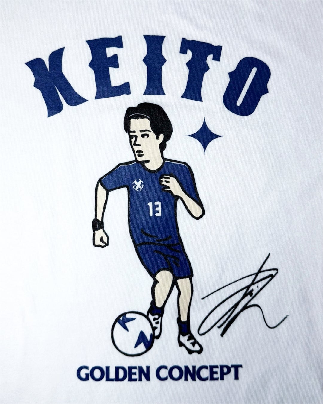 Tシャツには、「中村敬斗」選手を描いたイラストがデザインされています。そのイラストの胸元には、GOLDEN CONCEPTのロゴ、腕には Apple Watchケースのモチーフがあしらわれるなど、GOLDEN CONCEPTならではのディテールが随所に盛り込まれた一枚です。ファッションとしての存在感はもちろん、特別なコレクターズアイテムとしてもおすすめです。